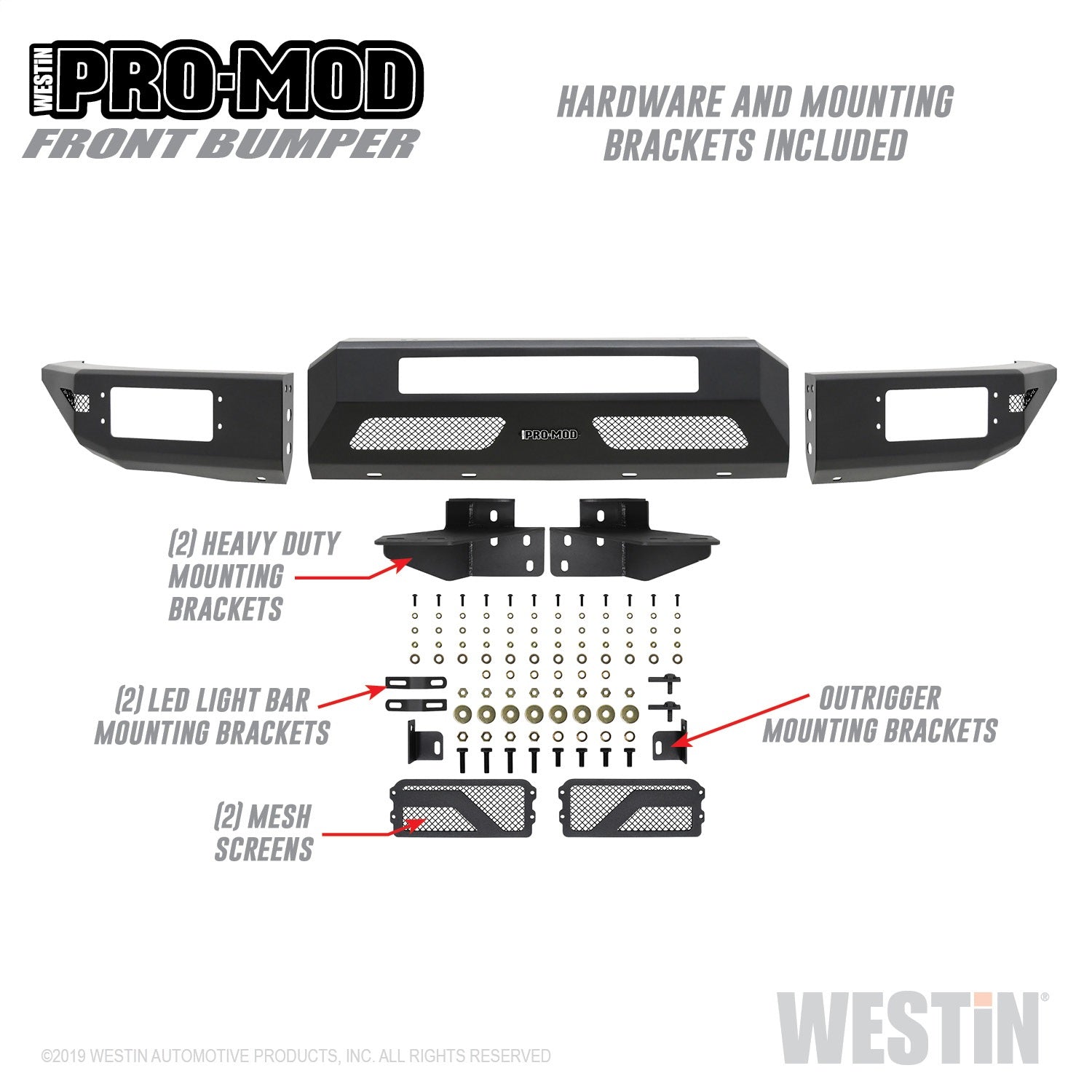 Westins Pro-Mod Front Bumper combines enhanced vehicle protection, with great looks. Pro-Mods revolutionary lightweight modular design...
