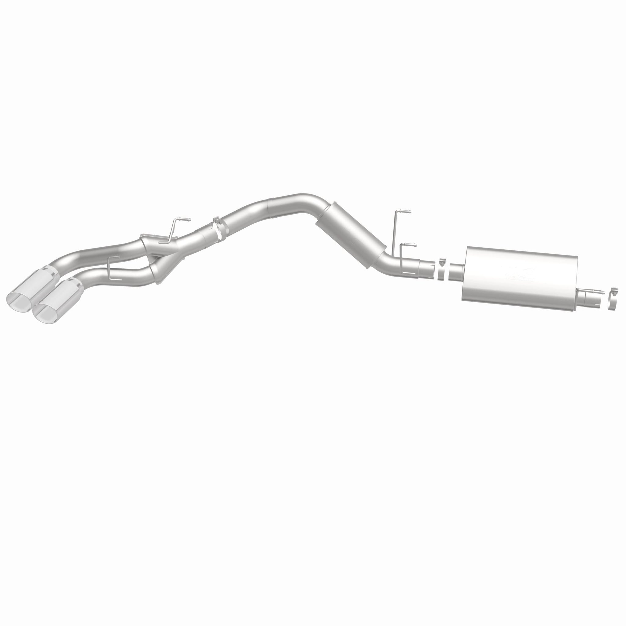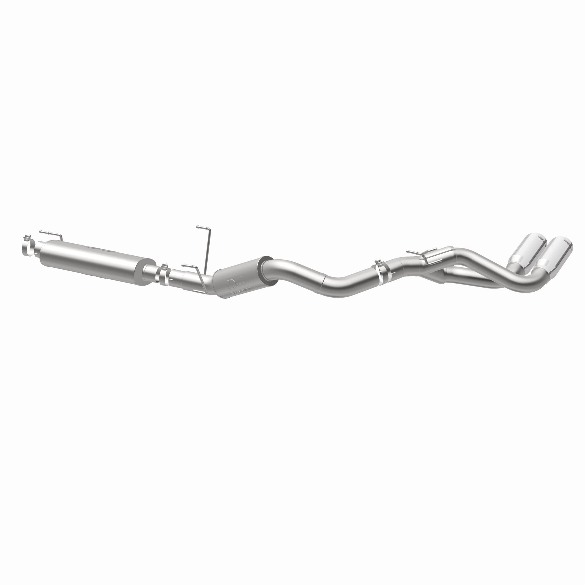 The MagnaFlow Street Series Cat-Back Performance Exhaust System 15333 brings out the personality of your 6.4L 2014-2023 Ram with our signature resonant, powerful engine tone and dyno-proven performance. Thanks to its fast-flowing, mandrel bent 3.5in. main piping and 1 Straight-Through mufflers ending in a Dual Same Side Behind Passenger Rear Tire exit with 5in. Polished Welded-On Double Wall Angle Cut Rolled Edge tips, this Ram exhaust kit has the performance chops to match its sporty sound and appearance. Upgrade your ride to the next level with an exhaust that has the pipes to put other Ram's to shame. With this system your vehicle will be producing Agressive exterior and Moderate interior sound levels while leaving other cars and trucks feeling envious at every stoplight. Exhaust kit 15333 features a cat-back layout that replaces your ride's stock exhaust components from near the catalytic converter on back. Extensive 3D scanning during development has resulted in a direct-fit design that you can easily install yourself. 15333 is produced using CNC precision robotic manufacturing techniques and is backed by MagnaFlow's 1-year limited finish warranty and limited lifetime construction warranty.
