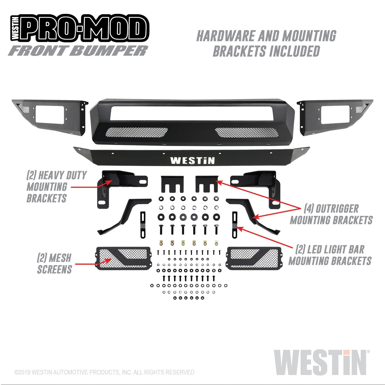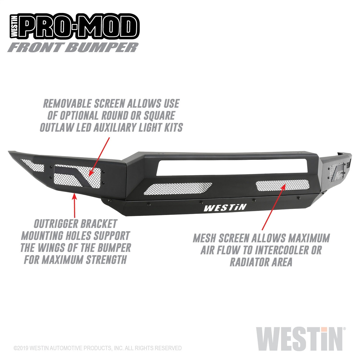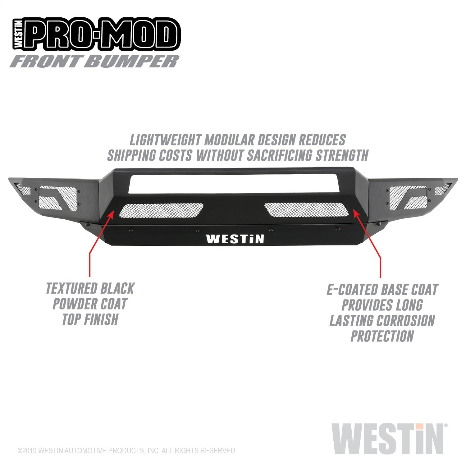 Westins Pro-Mod Front Bumper combines enhanced vehicle protection, with great looks. Pro-Mods revolutionary lightweight modular design...