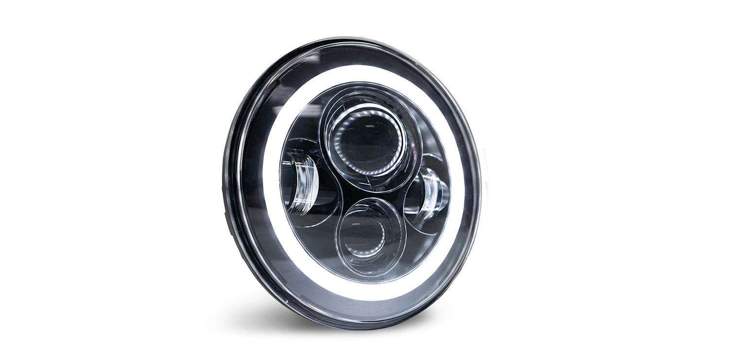 DV8 LED projector headlights are a huge upgrade from stock JK headlights in both brightness and style. They use advanced optical technology to make the most of the LED lights that are housed within them. This projector sends a bright and useful pattern toward the front of the Jeep allowing you to see almost twice the distance of a stock headlight. Many also prefer the white light that these headlights give off rather than the amber color from standard headlights. The lights come with a full harness to allow for simple and easy installation. LED Projector Headlights with Halo. Sold as a Set. Fits 2007-2018 Jeep Wrangler.