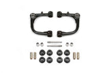 2015-19 Toyota Tacoma 2WD/4WD 6 Lug - Fits 0-6in Lifts. Fabtech's Uniball Upper Control Arms provide increased strength to the front suspension by replacing the stock ball joint upper arms that can become worn and eventually fail under aggressive offroad use. These heavy duty upper arms are designed for longevity in rugged offroad conditions. They also feature additional caster compared to stock upper arms for superior on road use with oversized tires. The top quality construction of these arms include .120in wall 1.250in OD 4130 Chromoly tubing and American made 1in FK Stainless PTFE lined Uniballs. The 17-4 Stainless Steel heat treated Uniball pins fit into the factory ball joint tapers without modification to the spindle for easy return to stock feature. Fabtech uses 17-4 Stainless steel for the misalignments that provide proper clearance of the 1in Uniballs throughout the travel range. On the frame side of the upper arms, there are quality urethane bushings that help reduce road noise while providing longevity. Fabtech's Uniball Upper Control Arms are an excellent upgrade to stock or lifted suspension systems for drivers that demand the best for their vehicle. Features: Arms eliminate factory upper ball joint w/ super strong 1in ID Stainless Steel American Uniball for increased suspension strength. Additional caster is built into Arms for enhanced align ability with oversized tires. 1.250in OD .120in wall 4130 Chromoly tubing reduces flex found in stock arms for more positive road feel. 17-4 Heat treated Uniball pin fits into factory ball joint taper without modification to the spindle for easy return to stock feature. 17-4 Stainless steel misalignments for proper clearance of large Uniballs throughout the travel range. 250 wall DOM bushing barrels with welded gussets for strength. Uniball Upper Control Arms.